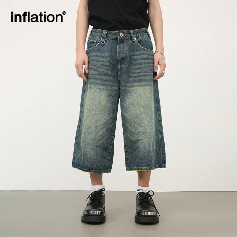INFLATION Blue Wide Leg Denim Shorts
