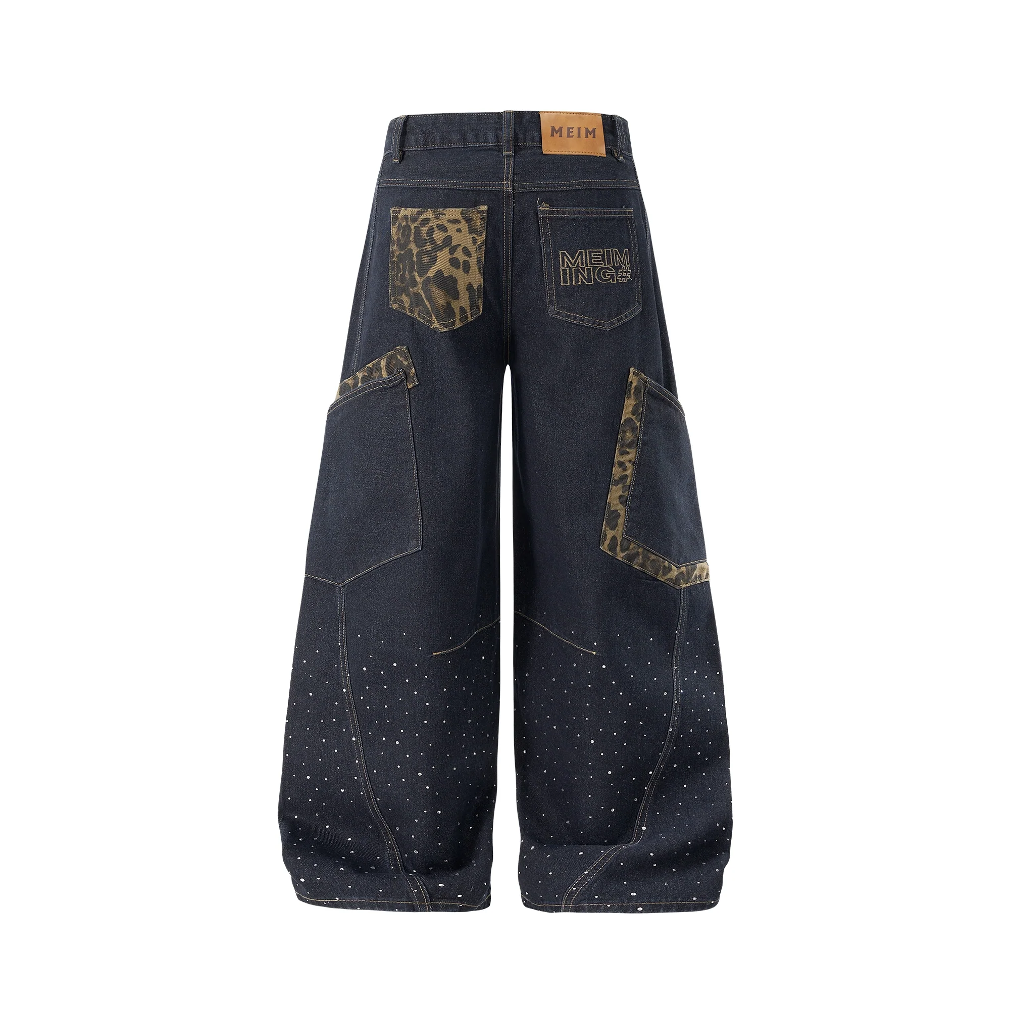Leopard Patch Rhinestone Barrel Jeans | Inflation Streetwear
